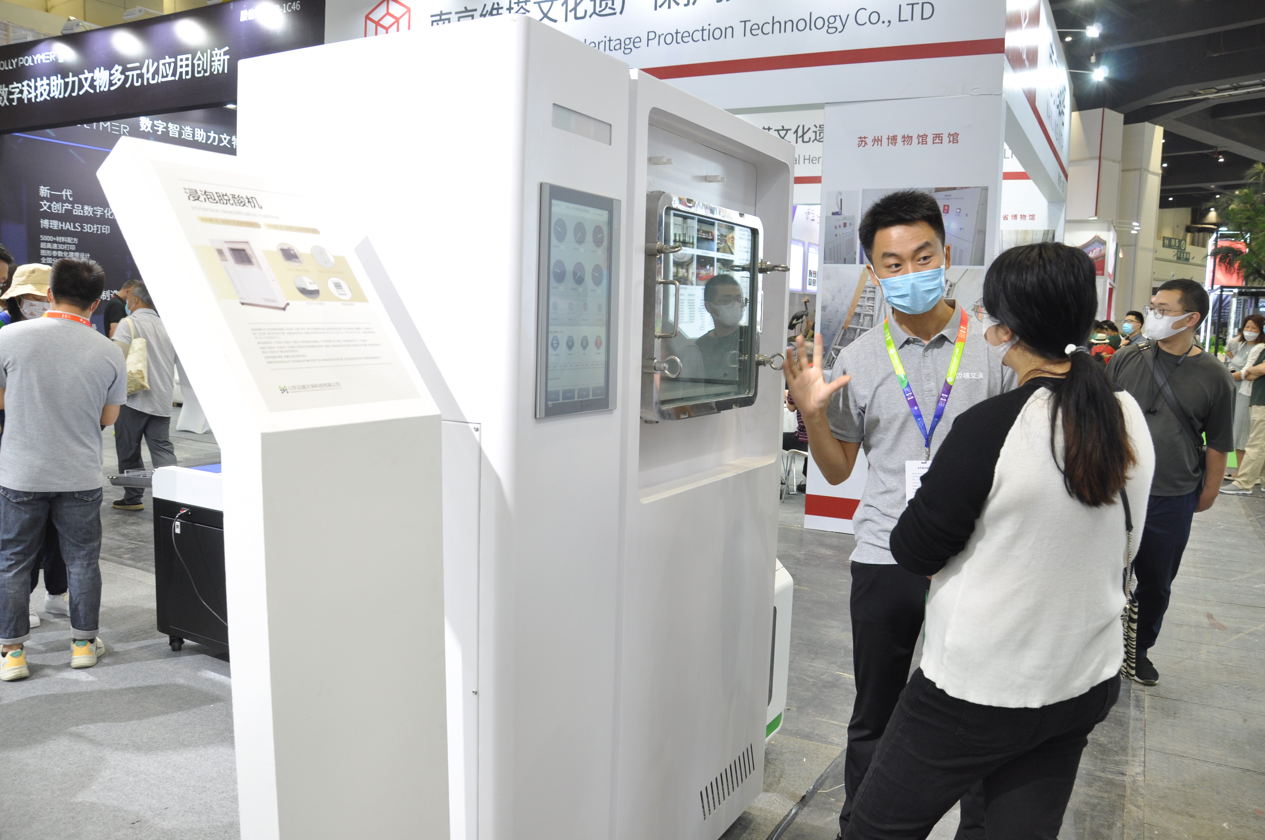 此次展會(huì),山東邁越文??萍加邢薰驹谝粚?E 區(qū) B39-B42亮相,展位面積36平方米,攜先進(jìn)紙張脫酸技術(shù)系列產(chǎn)品及紙漿修補(bǔ)技術(shù)產(chǎn)品參展。一經(jīng)亮相便受到了同業(yè)人員及博物館相關(guān)人員的廣泛關(guān)注,非專業(yè)人士也深感興趣,不少參展人員駐足圍觀紙漿修補(bǔ)機(jī)的現(xiàn)場(chǎng)演示。