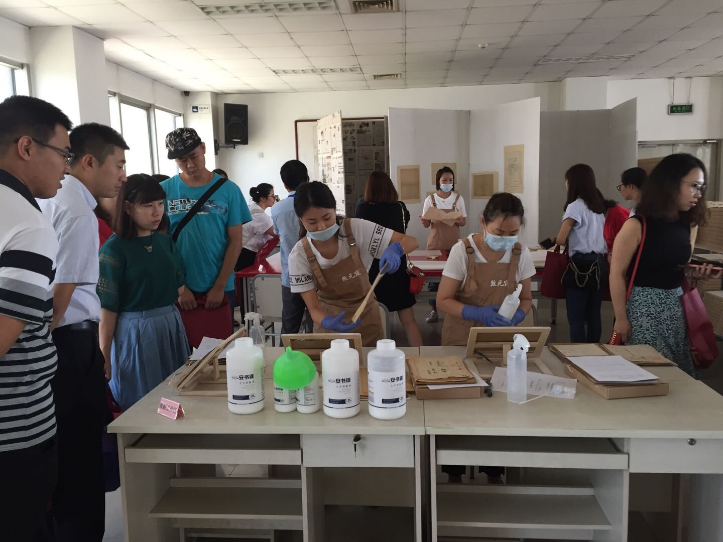 濟(jì)南邁越攜安書鎂無水脫酸液助力國際檔案日,在北京市房山區(qū)檔案館現(xiàn)場進(jìn)行脫酸演示,引起參觀者一致好評。