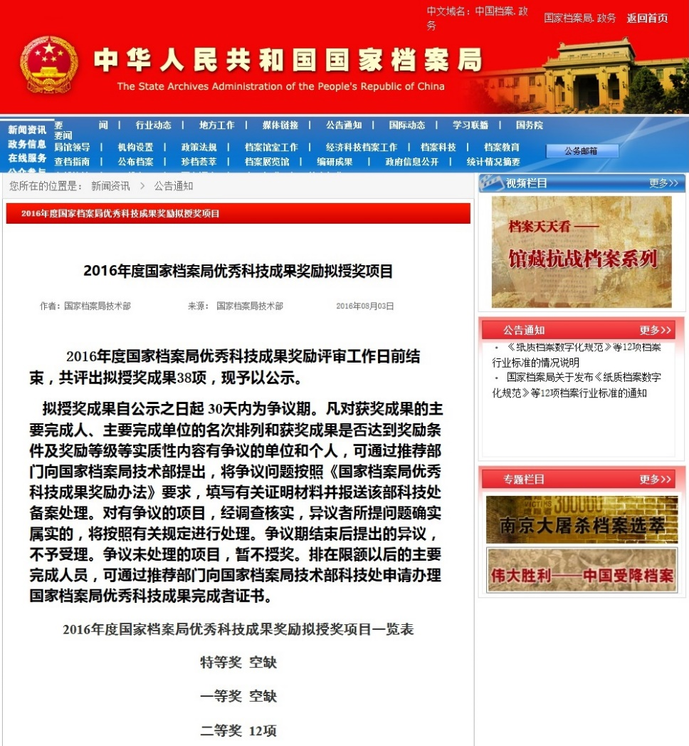 濟(jì)南邁越(stepmore)榮獲“2016年度國(guó)家檔案局優(yōu)秀科技成果”二等獎(jiǎng)