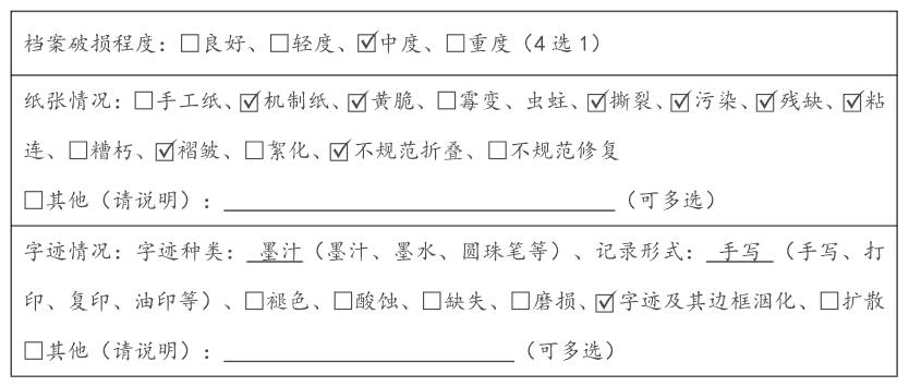 根據(jù)《DAT 64.2-2017紙質(zhì)檔案搶救與修復(fù)規(guī)范?第2部分:檔案保存狀況的調(diào)查方法》實(shí)施。首先確定調(diào)查范圍、抽樣比例和調(diào)查對(duì)象。